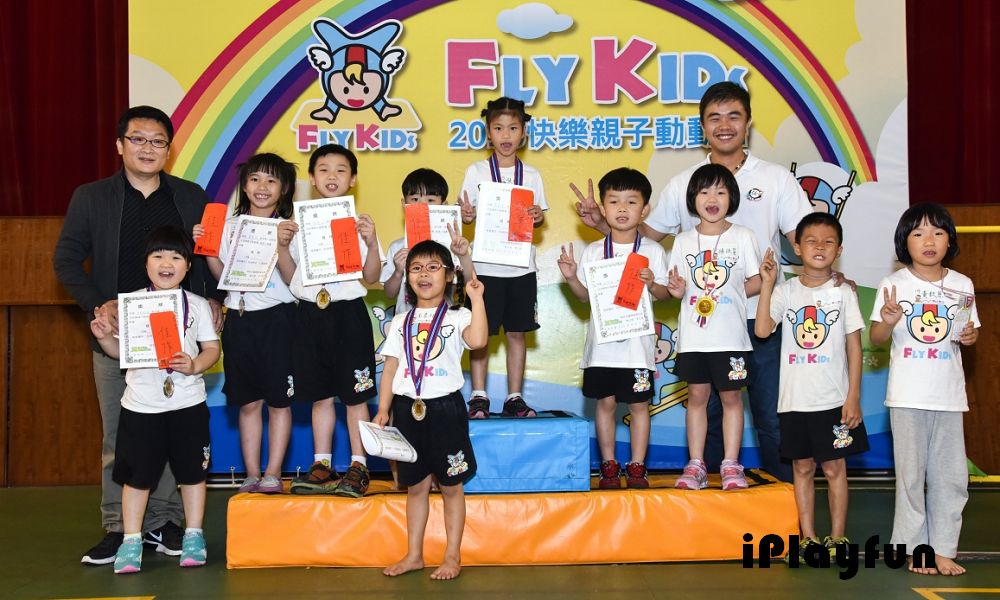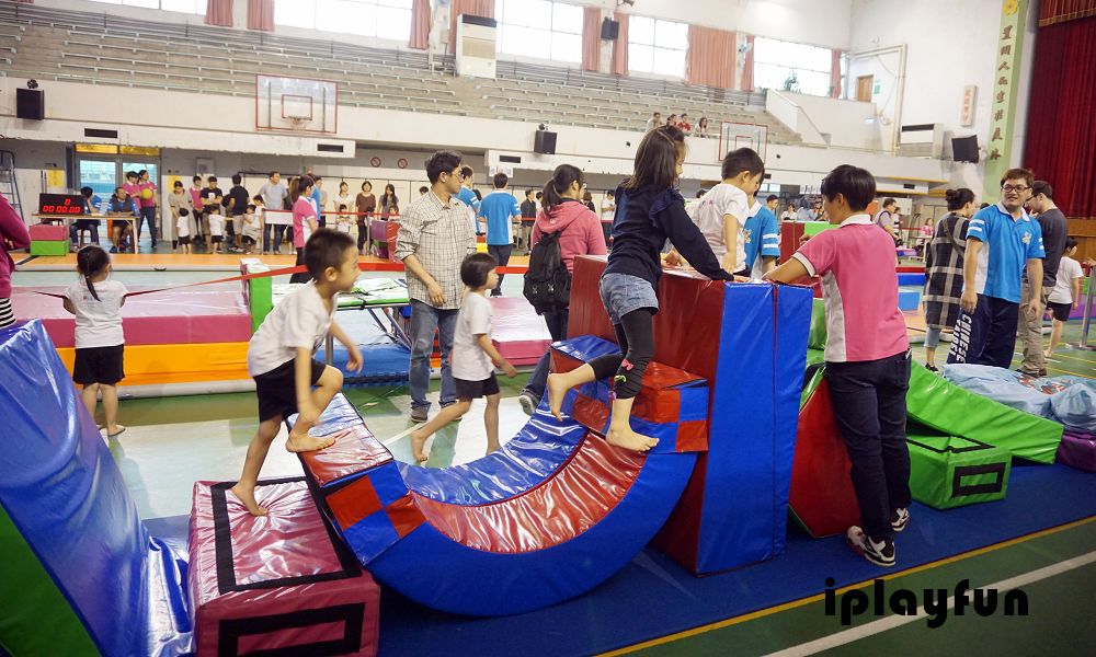 除了體操比賽,還有「歡樂親子大挑戰」除了比完成速度更挑戰體力與體操專業度,一連八道關卡,需要完成合力前行、兩人手推車、彈翻床跳躍等一系列體操挑戰。飛奇兒教練團隊擁有40餘名專業師資,皆畢業於體育專業校、系,亦在體操界中有亮眼表現。