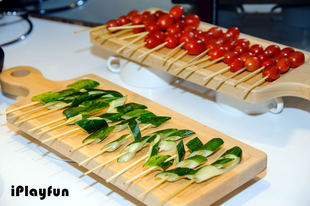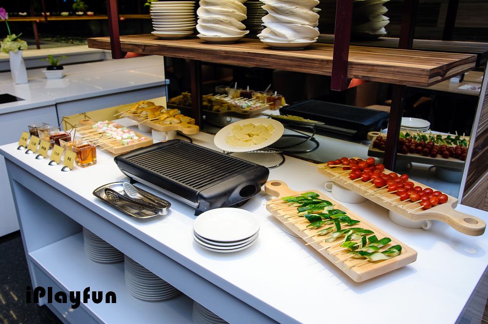 ►點主餐可享用小點心吧台,燒烤年糕、黃瓜、小番茄、香菇等