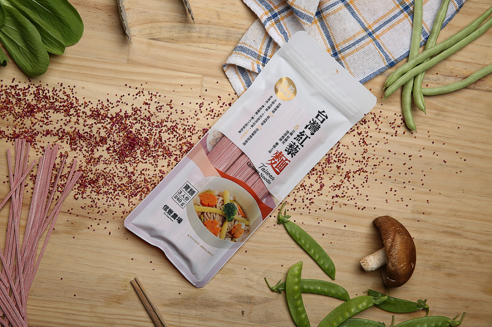 信豐農場全新推出的「台灣紅藜麵」,以全穀紅藜研磨,混和嚴選小麥製成,包含紅藜的完整營養價值,卻更方便烹調。