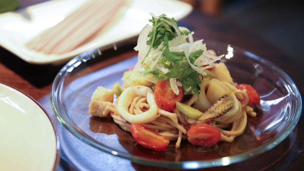 小剛老師示範台灣紅藜麵創意料理:泰式香辣海鮮冷麵。