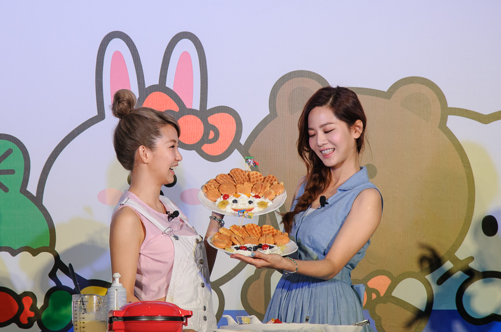 代言人曾之喬(右)與郭書瑤(左)現身活動現場,挑戰可愛造型鬆餅DIY。