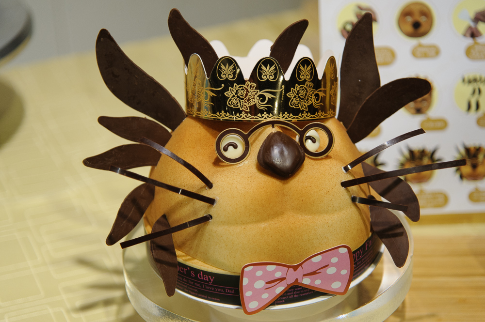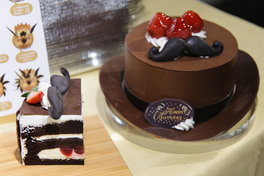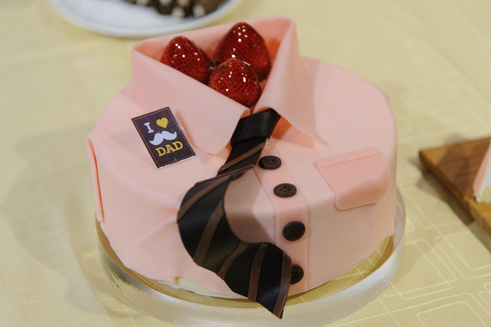 魔術老爹為紳士帽造型,爸爸就像孩子們的大玩偶一樣總是可以變出很多花招一起玩耍。內餡是巧克力蛋糕,夾上白乳酪慕斯,口感香濃。粉紅老爸造型為襯衫與領帶,蛋糕內餡為戚風口味結合香草乳酪慕斯,香濃可口。與魔術老爹蛋糕一樣,蛋糕體外層為巧克力裝飾片,建議要將蛋糕切片之前先把領帶與領子取下,再切成適量大小食用。8吋蛋糕繽紛法朵為香草戚風蛋糕,夾層中草莓慕斯和布丁結合,繽紛的水果滋味甜蜜在心頭。