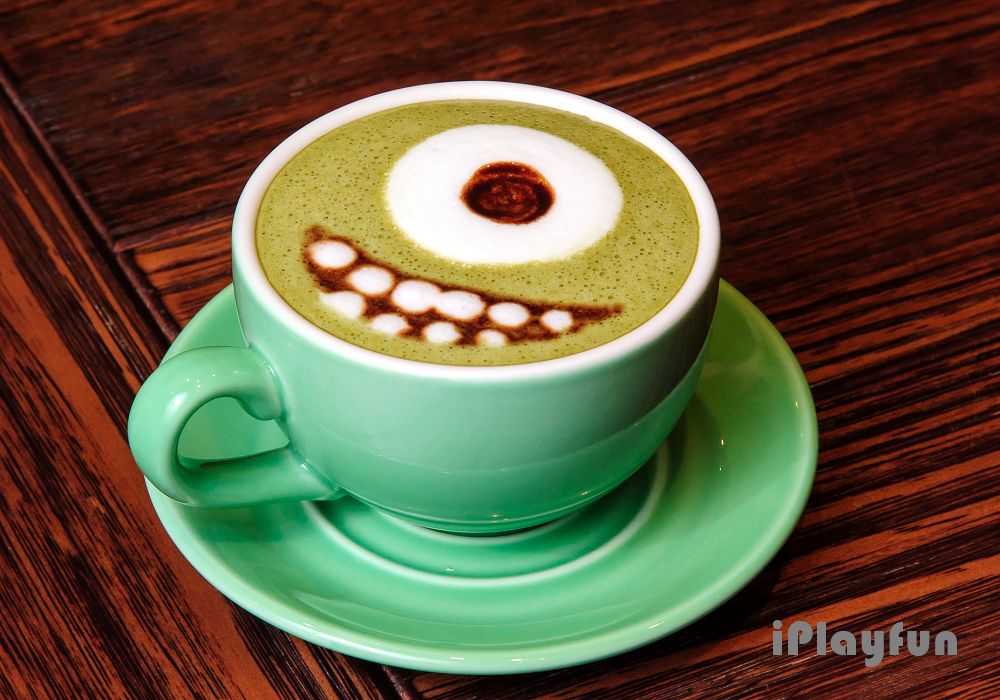 抹茶拿鐵口味濃郁,使用新鮮牛乳搭配品質良好的抹茶製作而成。而此份抹茶拿鐵的特殊拉花為特製,想要有大眼怪拉花的消費者請至政大店碰碰運氣囉!