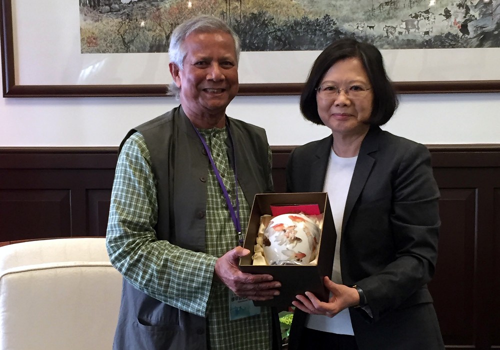 諾貝爾和平獎得主尤努斯博士於上週訪台,出席台灣尤努斯基金會在今年8月24至25日舉辦2016社會型企業東亞年會,尤努斯博士因創辦格萊珉銀行(鄉村銀行,又被稱為窮人銀行)而於2006年獲得諾貝爾和平獎,台灣尤努斯基金會董事長蔡慧玲表示,尤努斯基金會才成立一年,能獲得尤努斯博士授權主辦東亞年會是一項殊榮,這次年會有來自馬來西亞、泰國、日本及孟加拉等各國尤努斯中心的專家學者及社會型企業家,還有遠從非洲烏干達的貴賓,許多國家人士一起交流社會型企業知識及經驗。