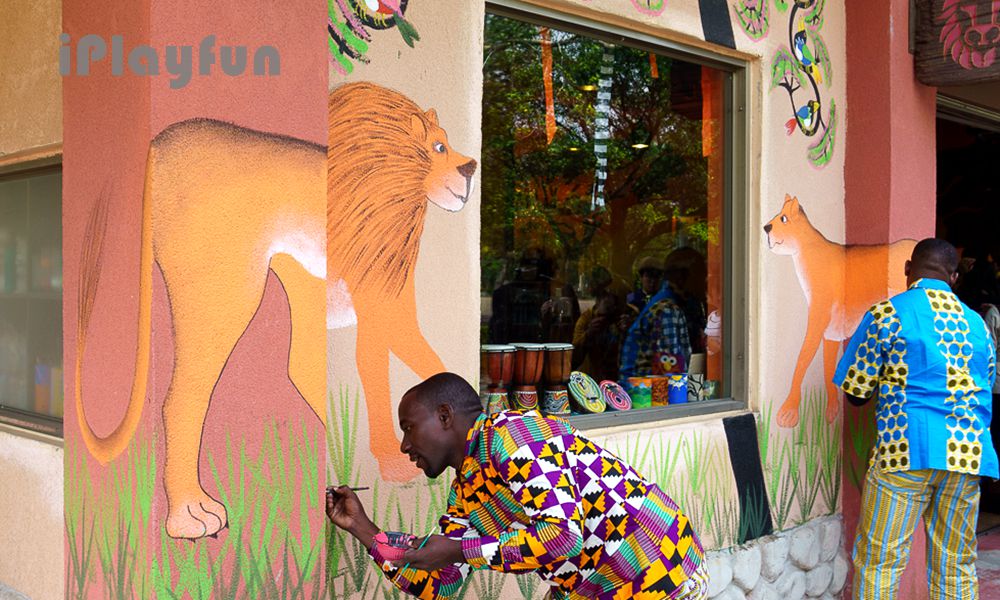 關西六福莊,天天都有非洲舞者載歌載舞,和陸續推出的Tinga Tinga當代大師Abbas 及Mustapha以旅館為畫布的實境彩繪秀、四月露天電影院、每週六非洲草原奇幻旅程帶動唱、動物氣球派對等一連串活動,帶領孩子們進入充滿生命力與想像力的神祕非洲大地。