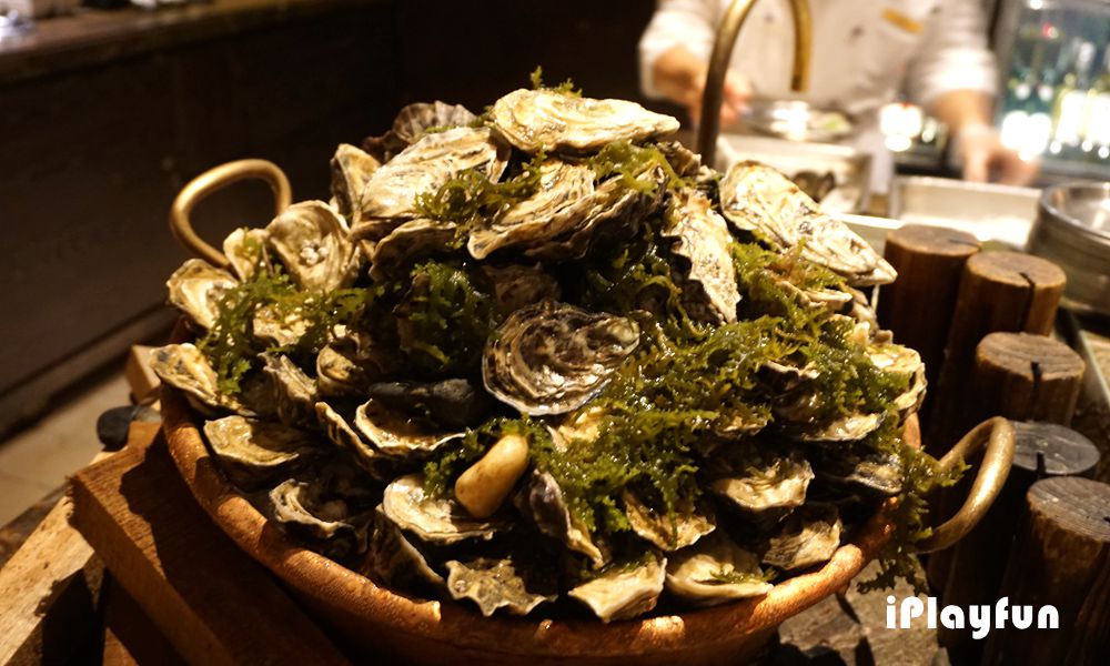 思萊河生蠔綜合了各地生蠔的優勢,不僅帶有澳洲生蠔的霸氣鹹味,更擁有法國生蠔的爽口甜味;一入口首先感受到海洋的鹹味,咬開蠔肉後,黃瓜般的清甜香味,隨即擴散於口腔餘味悠長。這份層次分明的雙重美味,是熱愛生蠔的饕客必嘗之選。在自助餐檯上還有嚴選超過20種的新鮮有機蔬菜、日式炸物、海鮮餐檯、現榨果汁、現點現作義大利麵、莫凡彼冰淇淋及各式精緻甜點無限吃到飽。