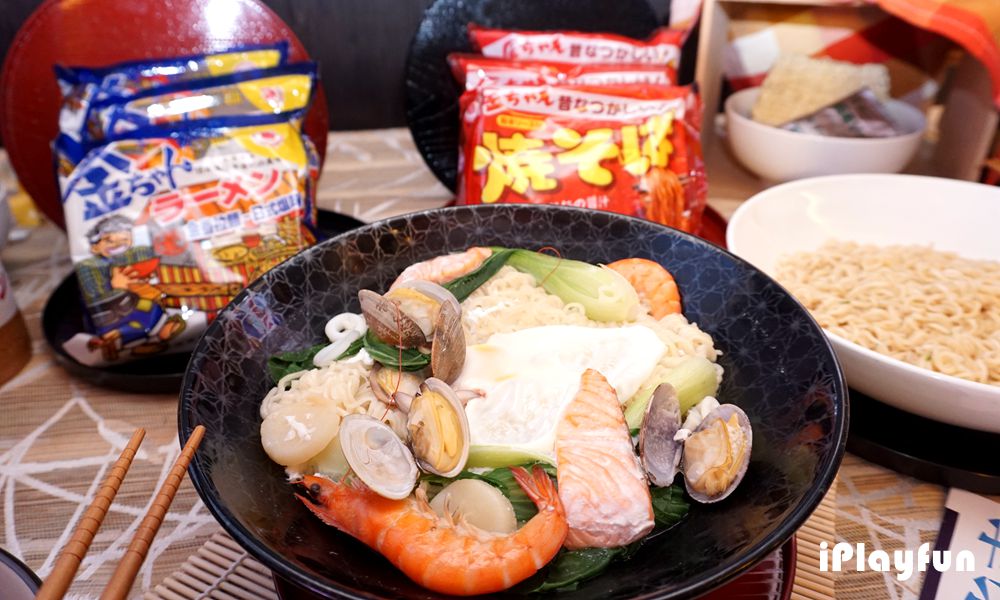 阿發師現場示範金香拉麵的湯麵與乾麵製法,3分鐘就能繽紛上菜,非常適合忙碌上班族。在水滾後,放入拉麵、透抽、干貝、鮮魚片、木耳、青菜、蛤蜊,加入調味料及打蛋,只要2分半鐘,就能煮出一碗料多味美的湯麵;乾麵烹調方式更簡單易學,水滾後放入拉麵,約1分鐘放入青菜、筍絲,稍拌勻,悶1分鐘讓食材煮熟,再度拌勻,阿發師亦提醒,不能煮太久,再拌1分鐘,雖是乾麵,但瀘乾後建議再加50CC麵湯,再加入調味料後拌勻,開另一個鍋,轉最小火,淋上打散的蛋,再加入紅蔥酥、芹菜、碎紅蘿蔔及少許的油,再悶30秒即可。