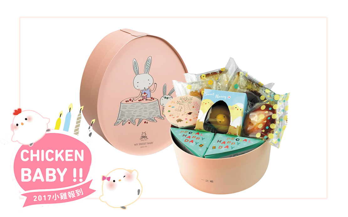 小雞誕生是一之鄉本年度精心設計的可愛彌月禮盒,主題為充滿慶賀之意的小雞,圓滾滾萌呆可愛、超療癒的小雞寶貝,搭配精緻設計粉色蛋形盒,盒子上繪有正在製作蛋糕的小兔子,而蛋型盒一打開就有驚喜。