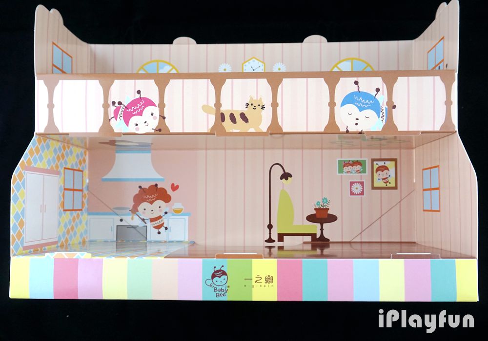 ►樓中樓造型外紙盒,打開來像是一個小蜜蜂的家,有幾隻小蜜蜂在其中生活著