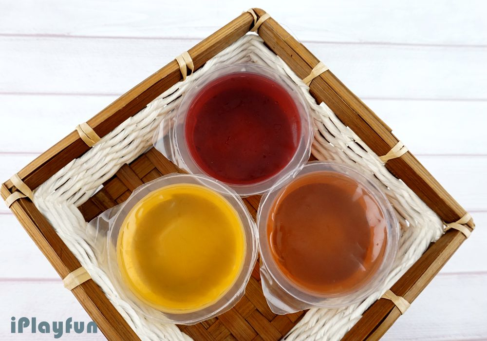 ►四季果露有柳橙、蘋果、葡萄三種口味,Q彈好吃,小朋友最愛