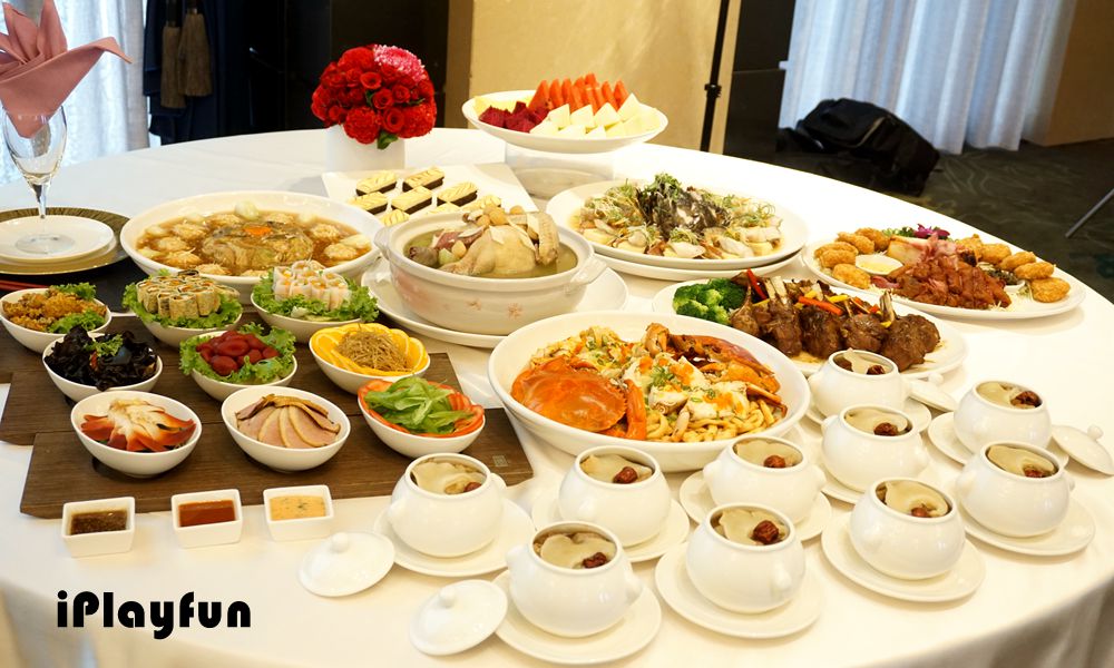 北投麗禧溫泉酒店的宴席桌菜在食材的選擇上,首重當季、在地,有正肥美的花蟹鉗肉與陽明山放山土雞一起熬煮的鼎湯雲腿燉雞盅,還有從印尼進口的肥美沙母,利用清蒸烹調的蒜泥沙母蒸粿條。經典招牌菜系列的佛跳牆,湯頭以老母雞熬煮8小時的高湯富含膠質,精選28天的陽明山在地現宰土雞,肉質Q彈多汁。春酒尾牙宴訂席並可免費使用獨立式包廂,訂席還有卡拉OK歡唱優惠。