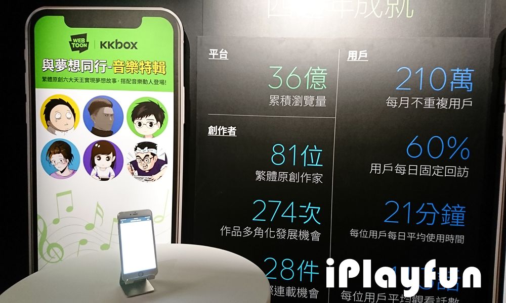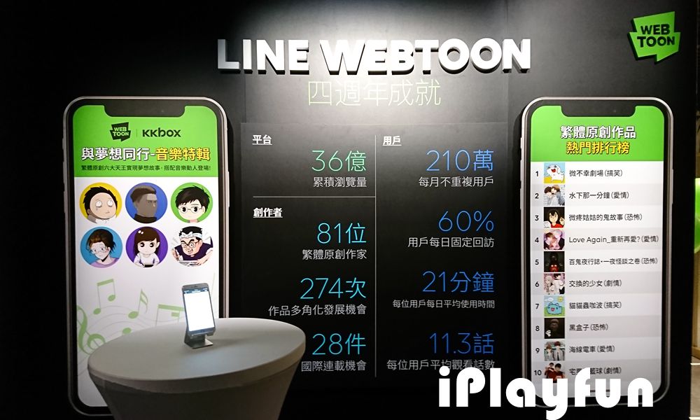 LINE WEBTOON服務範圍涵蓋全球,在台灣短四年內創下超過36億瀏覽量,LINE WEBTOON不斷挖掘優秀的在地原創作家,已協助81位繁體原創作家發表作品。LINE WEBTOON的繁體中文創作者數量僅次於韓國擁有最多作家的市場,目前81位繁體原創作者已推出近7,500話精彩內容,其中有24部作品瀏覽量突破千萬。