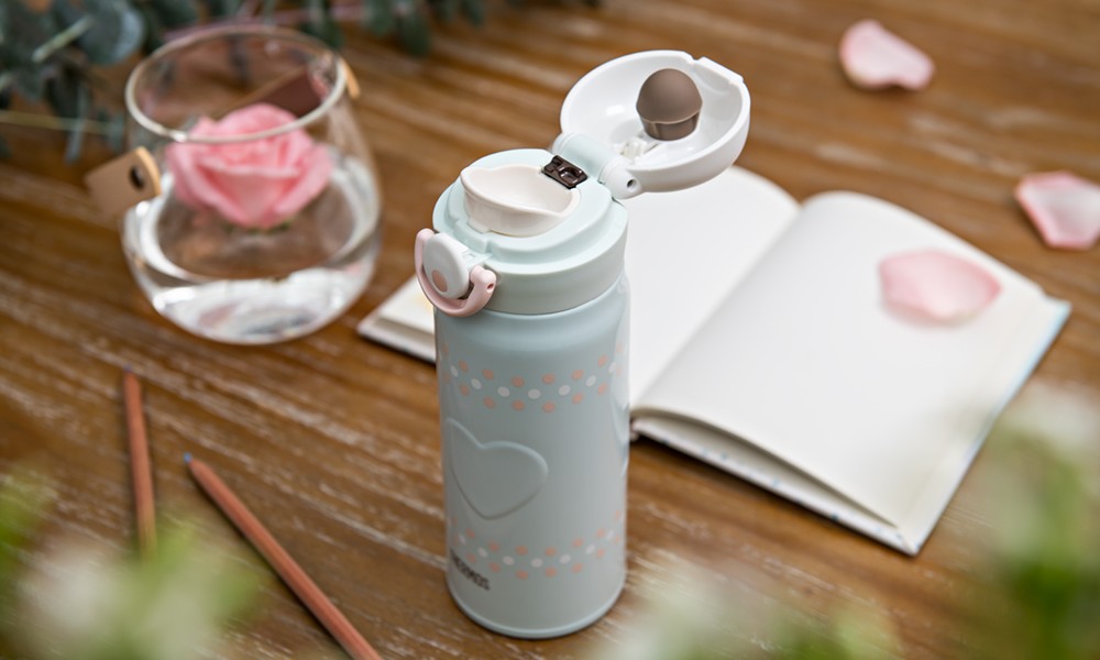 THERMOS 膳魔師推出的輕巧變不銹鋼保溫瓶新品,共有白色及藍綠色兩款,本次主打個人化風格保溫瓶,輕量瓶身搭配可愛印花圖案以及獨特立體愛心浮雕設計,讓人少女心大爆發!兩種色系皆以不同風格造型呈現,白色款的瓶身以桃紅手繪插圖襯托若隱若現、大小不一的立體愛心,展現俏麗甜心風!藍綠色的輕巧變保溫瓶以2019年的Pantone代表色珊瑚橘與白色圓點點綴瓶身,搭配偌大的愛心浮雕,活力可愛又不失時尚質感。此外,THERMOS 膳魔師更與多個卡通人物合作推出業界首創的瓶蓋風格貼片,讓消費者能自由搭配,隨時更換喜好的圖案,創造獨一無二的專屬造型保溫瓶,就算撞瓶,也能展現出自我風格的「愛現」態度,讓你想變就變、喜歡就型!此次推出的輕巧變保溫瓶新品特別打造400ml的容量,讓輕巧變保溫瓶系列的各種容量更加齊全,包括350ml、400ml、500ml、600ml及750ml,可依照使用習慣不同、家庭成員的不同,提供消費者更多選擇。瓶蓋的零配件全具有專利安全認證,專利安全扣環防止彈開外漏,在使用上絕對安心。