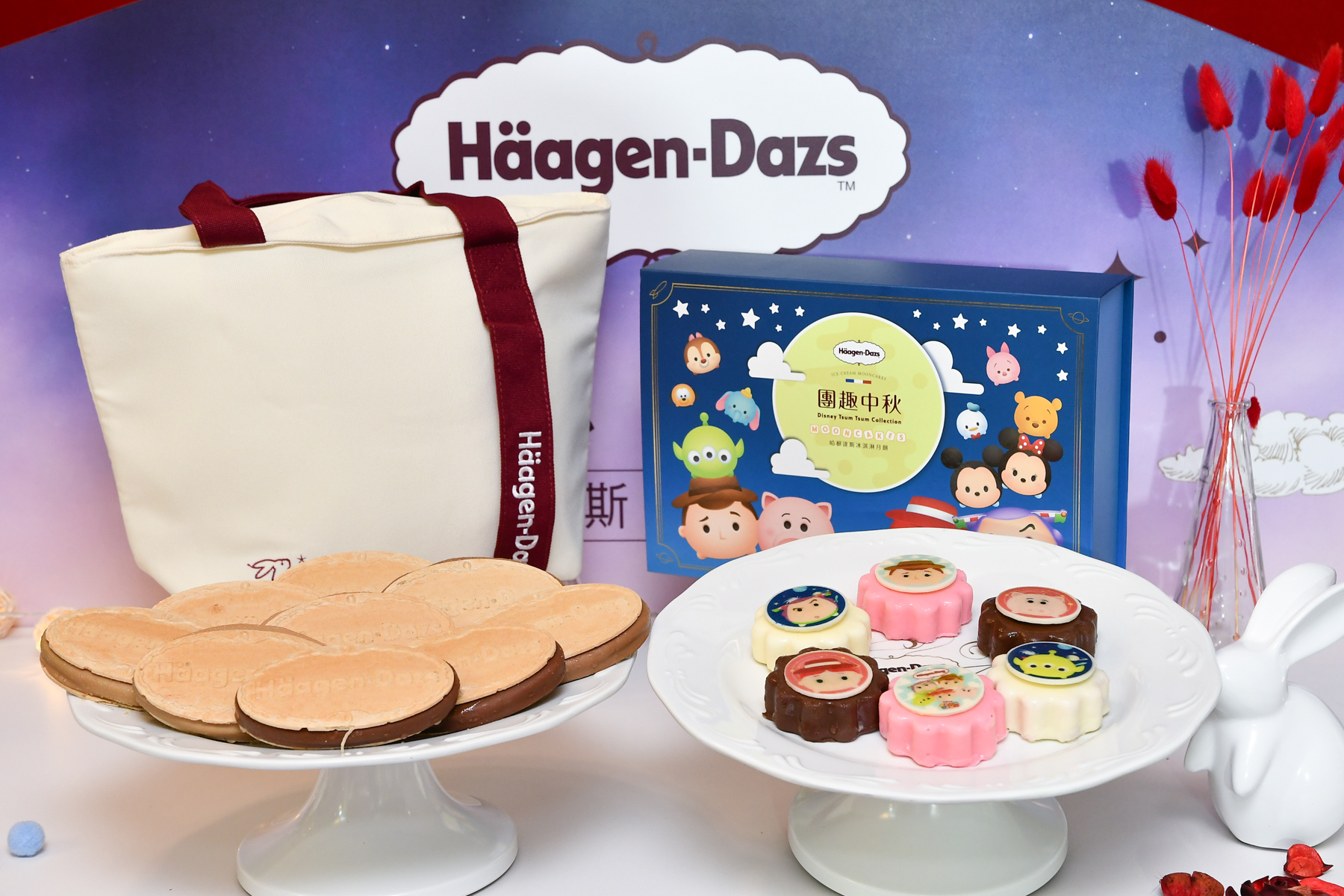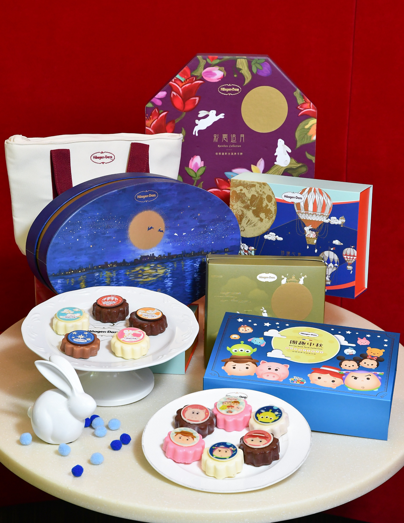 Häagen-Dazs獨家與迪士尼聯名的玩具總動員「團趣中秋」禮盒,今日Häagen-Dazs再揭曉全系列共七款冰淇淋月餅禮盒「玲瓏系列」為Häagen-Dazs熱銷十年的經典不敗款,以穿著帥氣西裝的兔子,搭乘熱氣球直奔月球的創新設計佐以大膽配色,顛覆以往對中秋傳統的想像,以經典的香草、巧克力、草莓,搭配今夏主打新口味,奇異果芒果優格、橙香柚子的限定清爽口味組合,外皮裹上濃郁純脆的巧克力脆皮,帶來的中秋清爽滋味,市場注目度持續飆高,甫上市就突破六千盒業績!有四入「經典玲瓏」、五入「玲瓏心意」兩款選擇,精緻中更顯巧思心意。