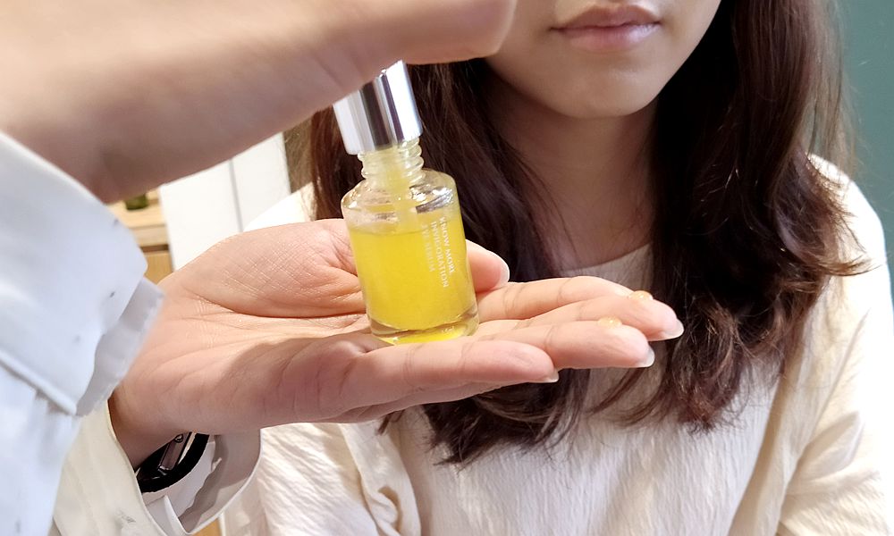 不添加界面活性劑的劑型,在使用前輕搖瓶身 10 秒,待精華液外觀金黃、精華以細緻氣泡狀均勻呈現時再輕抹。