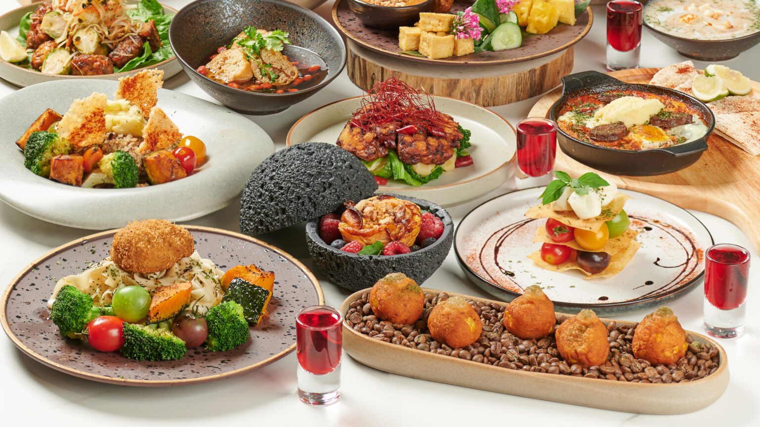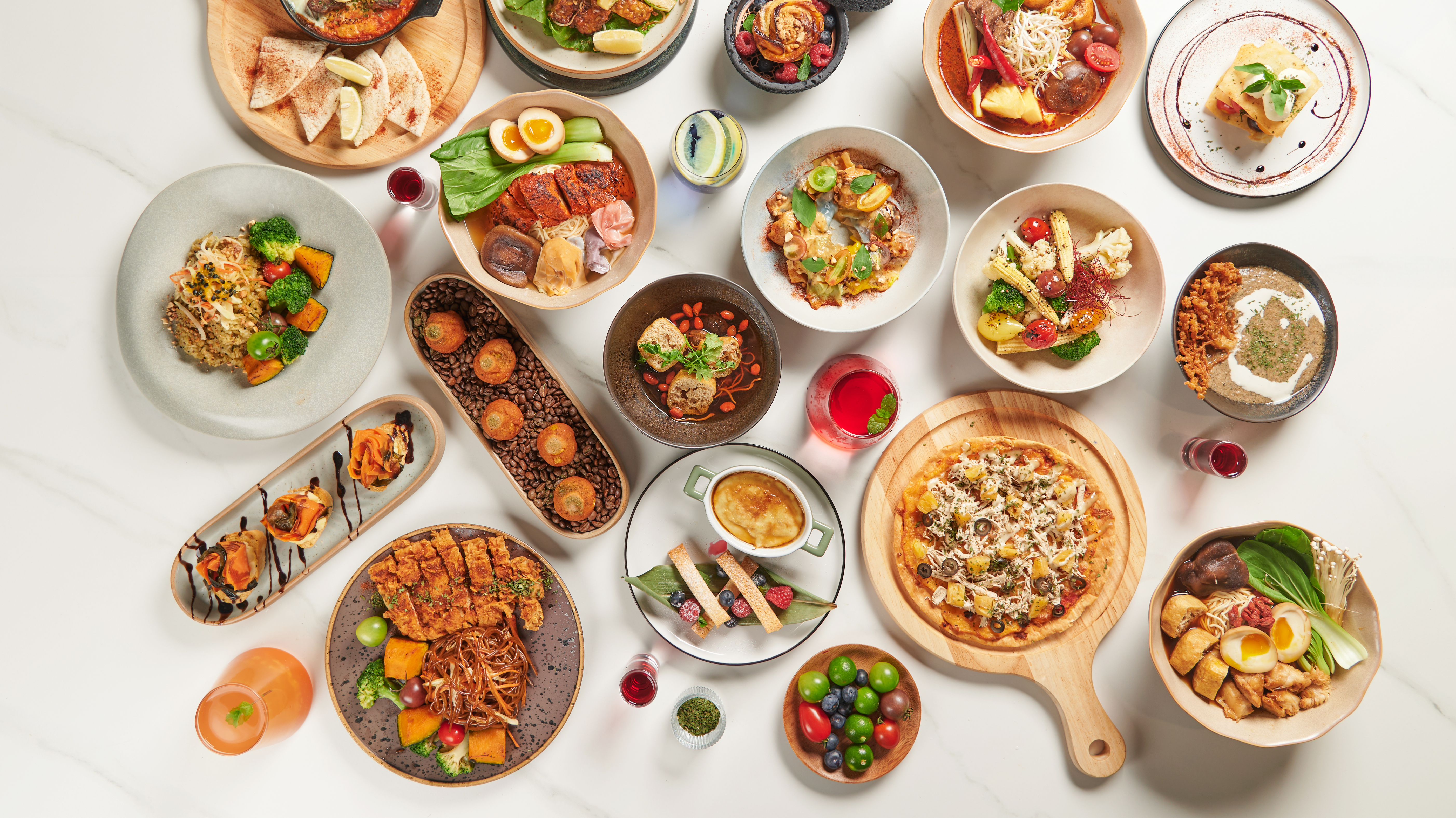 泰式綠咖哩百香燉飯,撲鼻而來香茅的香氣與椰奶香、搭配泰式的酸辣、米飯吸附綠咖哩濃郁的醬汁,點綴上酸甜百香果來解膩,吃起來既濃郁又爽口。東南亞風味的「馬來沙嗲拼盤」依照馬來西亞道地的擺盤與吃法,提升用餐氛圍,香濃的沙嗲醬微甜中帶辣,搭配小黃瓜、鳳梨和炸豆腐,彷彿置身在馬來西亞的街頭,感受其文化及獨特風味。