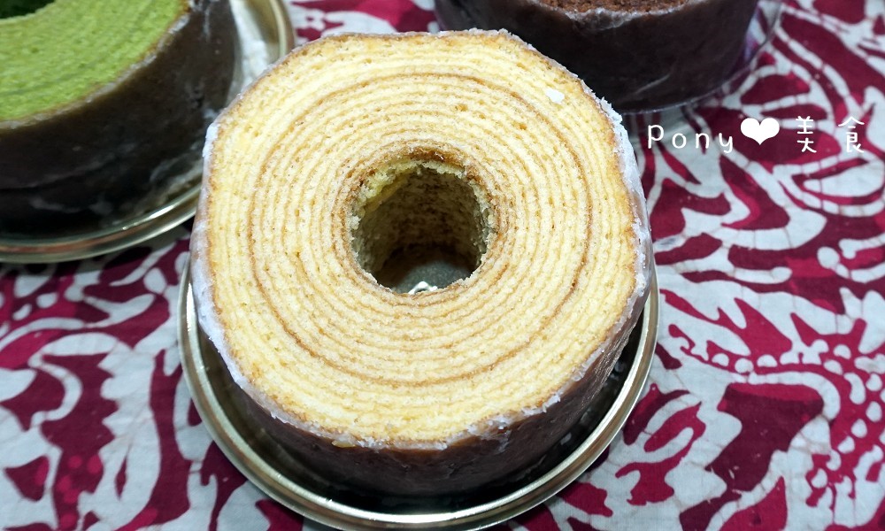 ►日式原味年輪蛋糕外圈裹著一層糖霜,內層是一圈圈的年輪蛋糕,材料使用日本北海道麵粉,┴奶油使用法國的Lescure奶油,並有加入蜂蜜跟蘭姆酒