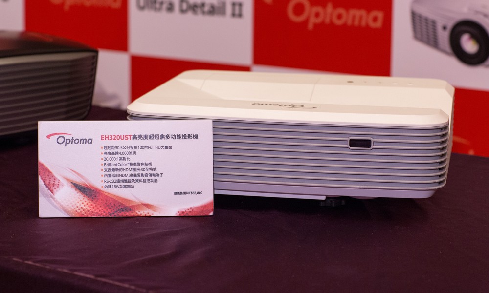 OptomaFull HD系列再添新成員,包括二款LED頂級劇院投影機HD2、HD93,配備1.5 倍大變焦鏡頭的HT50,以及僅需30.5公分即可投射出100吋大畫面的高亮度超短焦投影機EH320UST。