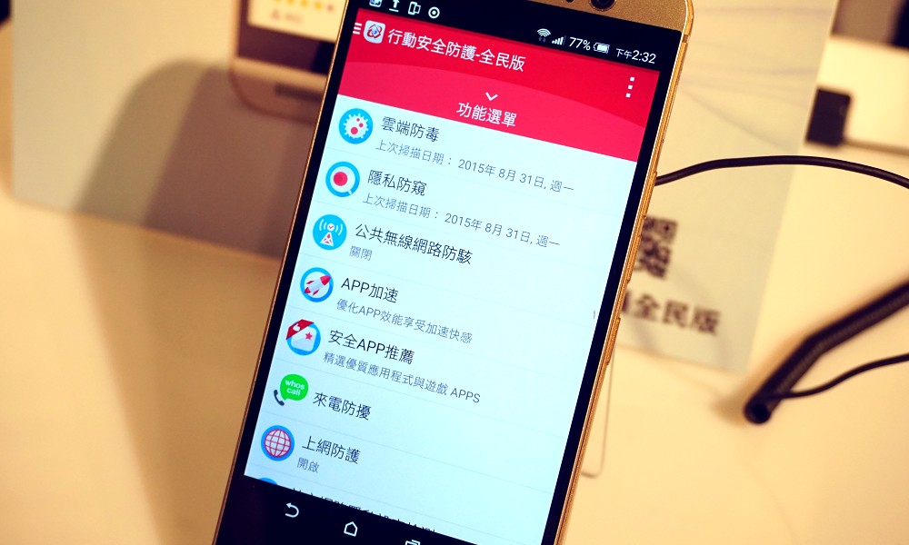 Whoscall來電防擾:《行動安全防護-全民版》APP亦結合Whoscall功能,內建詐騙電話資料庫,可於來電時辨識陌生來電與簡訊,並讓使用者封鎖特定號碼,過濾手機騷擾電話與詐騙簡訊。