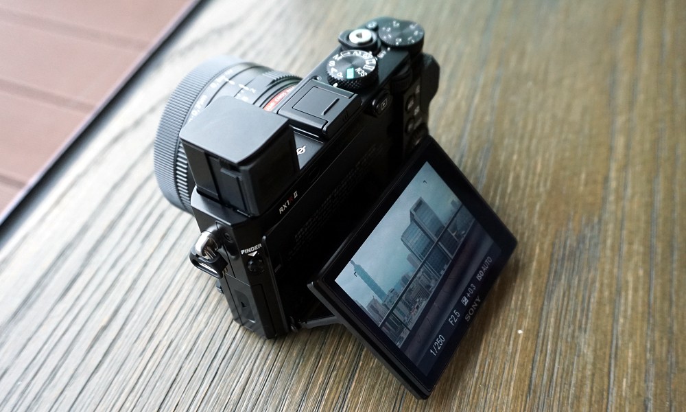 RX1R II內建添加蔡司T鍍膜的伸縮式XGA OLED觀景窗,使用雙面非球面鏡片可提供0.74x放大倍率。搭載了3.0吋122萬畫素LCD顯示螢幕,使用WhiteMagic技術強化了明部畫素的亮度,可向上翻轉約109度及向下翻轉約41度。錄影功能方面,RX1R II搭載了更進階的感光元件與處理器,新增XAVC S攝錄格式9,並支援以60p、30p或24p拍攝50Mbps 高位元率的Full HD畫質影片。具備Wi-Fi與NFC功能,可與相容Android及iOS系統的Sony PlayMemories Mobile應用程式搭配,分享照片與影片。