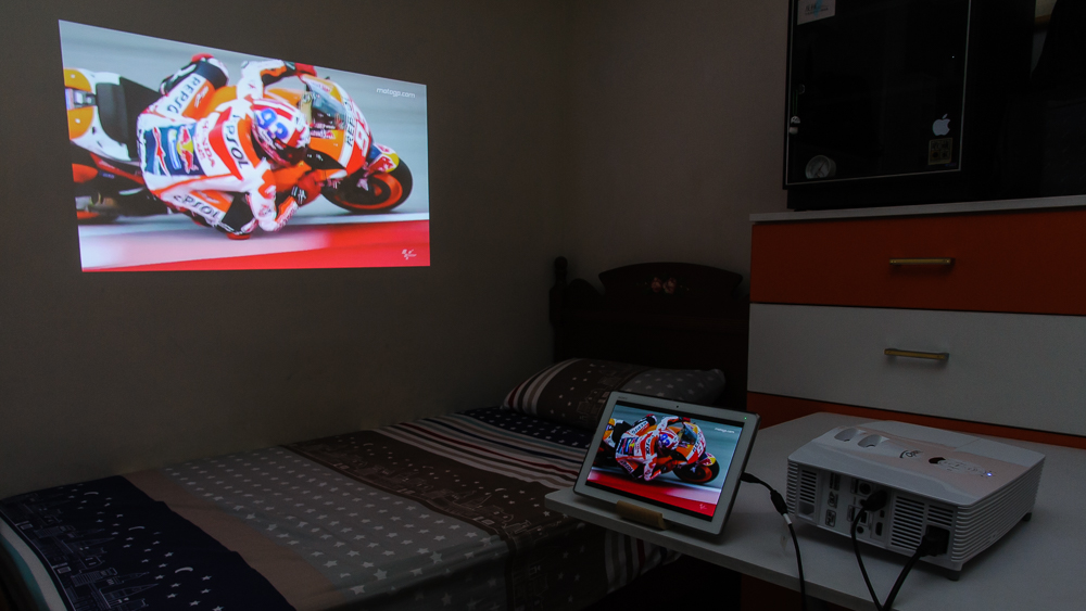 這回筆者就使用Optoma HD200D實際遊玩PS4遊戲主機,以及播放藍光電影與平板投影,體驗實際影音效果。筆者房間正好有一道白色粉刷牆壁,加上最多可騰出約2.5公尺投影距離,如此一來,實際投影尺寸就超過大部分LED電腦螢幕了!加上完整支援1080p影像輸出,原汁原味展現PS4主機硬體效能。