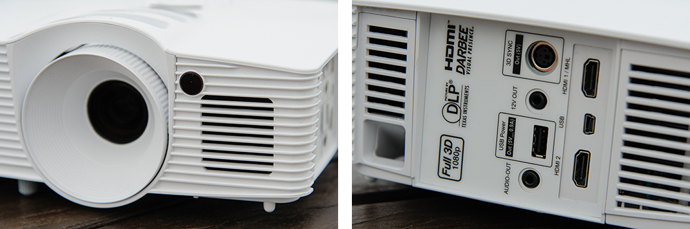 Optoma HD200D支援投影距離為1.5到10公尺,尺寸由41.8至305吋不等,一般台灣中小家庭客廳、臥室都能使用。在投影功能方面,配備德州儀器DLP技術,可輸出2000流明亮度、30000:1對比度,即便開著日光燈也能夠看得非常清晰,也不需特地購買專用投影屏幕,一般白色牆壁就可以有水準以上影像效果。