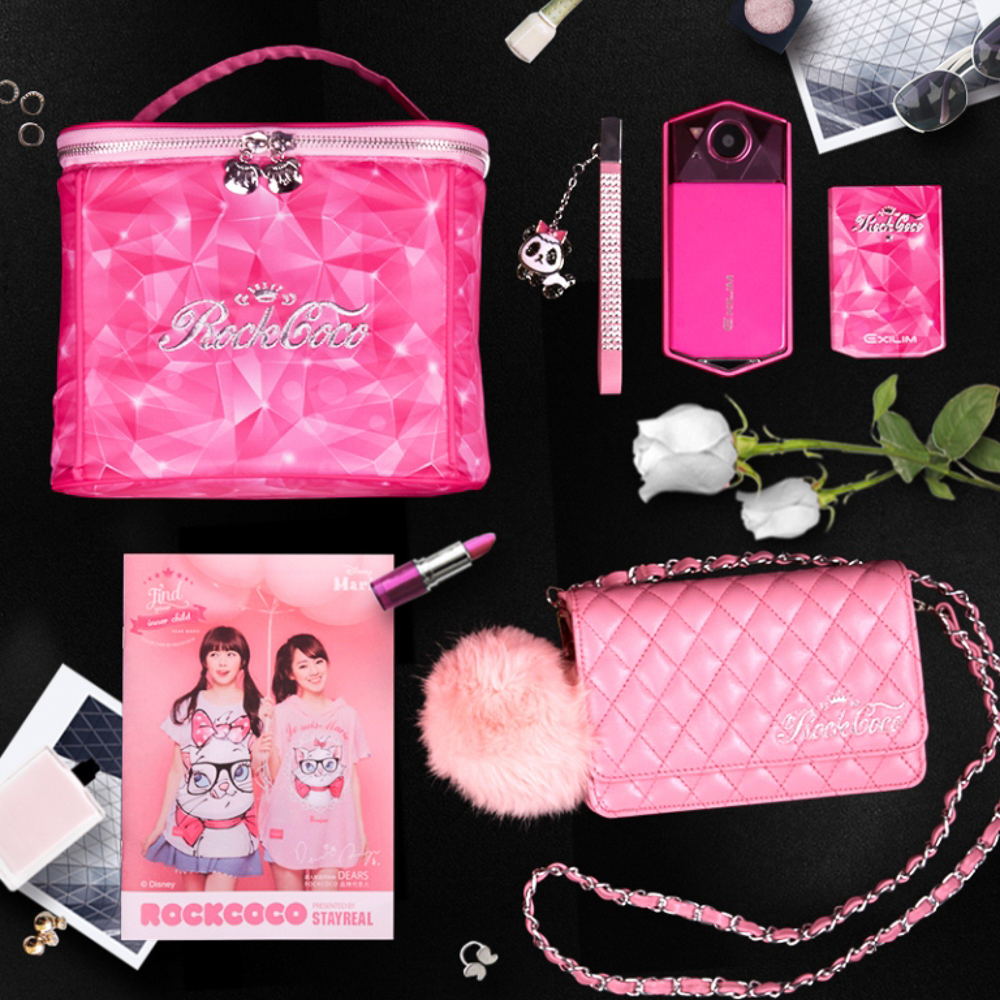 ROCKCOCO為五月天阿信和藝術家不二良聯手創立的潮流女裝品牌,首度跨界在CASIO EX-TR70添加夢幻氛圍,亮麗粉色的設計元素演繹全新時尚單品。