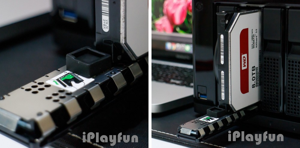 安裝過程十分簡單,只需順勢輕輕推入磁碟並鎖上磁碟機槽門,即完成初步安裝。