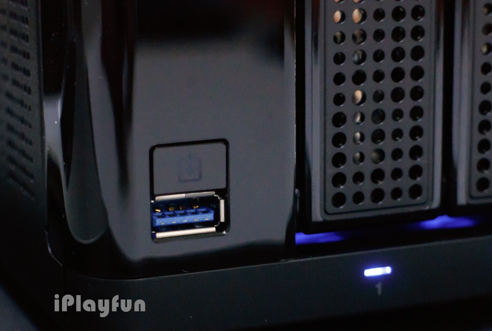 ►機殼前方USB 3.0可連接相機、攝影機.....等裝置,只要按下傳輸鍵即可直接備份照片、影音檔案。