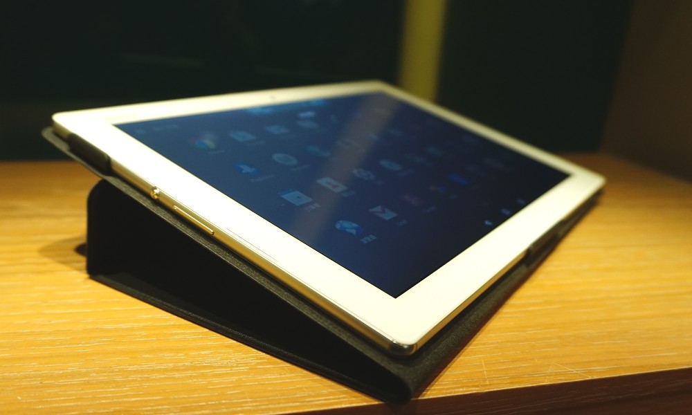 ▲搭配SCR32保護套,Xperia Z4 Tablet可提供兩種擺放角度,便於打字或播映。