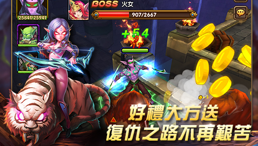 歡慶《復仇英雄》封測,好康大方送。凡參與封測的玩家,在正式上市時,即可獨家獲得超級三星英雄-火貓。另外每日登陸均可獲得禮物。次日登陸更送出極品英雄-冰女。首儲的玩家將贈與二星英雄-大娜迦。通關副本再送魂石,收集的魂石可將英雄提升至三星,多樣好康讓你一路順利過關斬將,復仇之路不再艱苦。
