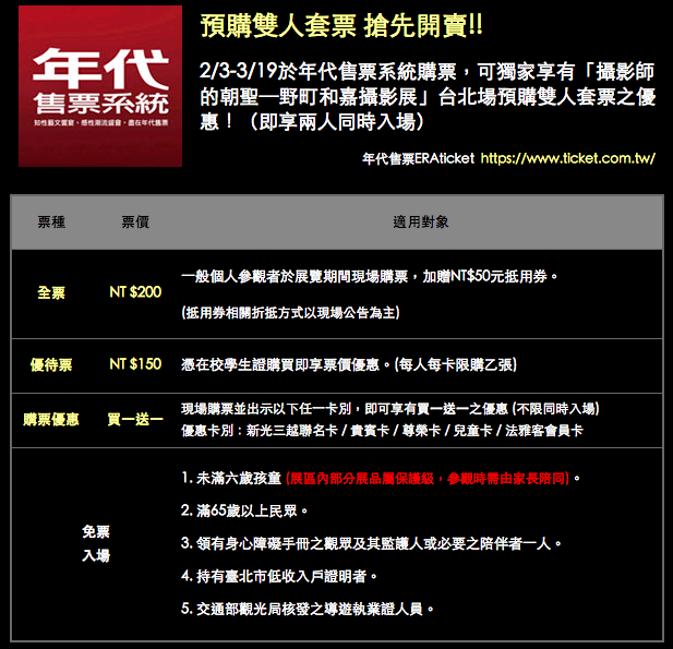 展覽購票資訊。資料來源:新光三越文教基金會