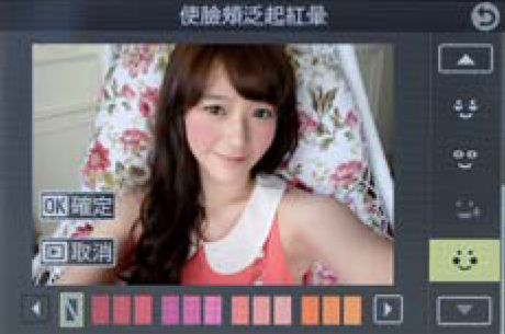 內建八款魅力修飾功能,可柔化肌膚、修小臉型、提亮肌膚、美白牙齒、增大雙眼,甚至能遮蓋眼袋、12色腮紅上色,設定效果可調整修飾級別並混合配搭,透過 LCD 觸控螢幕輕鬆點擊調整,原始與修改後圖檔皆會留存。