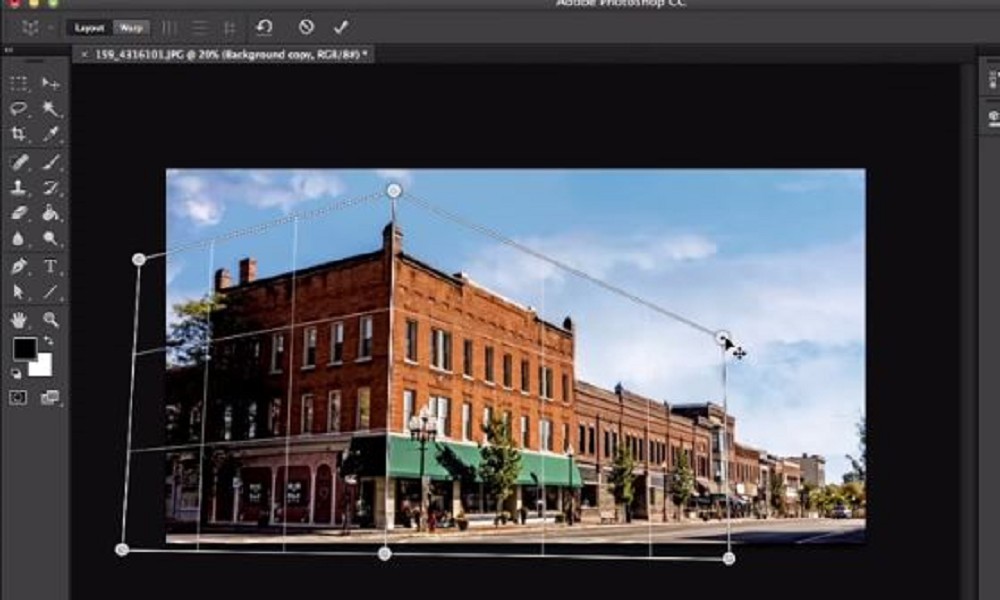 ►選取透視彎曲功能,在照片上選定想調整的物件範圍